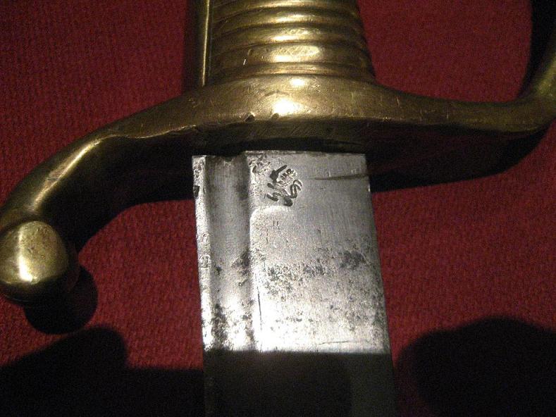 Ein weiteres Stück, insgesamt zierlicher, Klinge mit einem obenliegenden Zug, der Stempel auf der Fehlschärfe "nach links laufender doppelschwänziger Löwe" etwas größer und detaillierter als der obige Stempel.