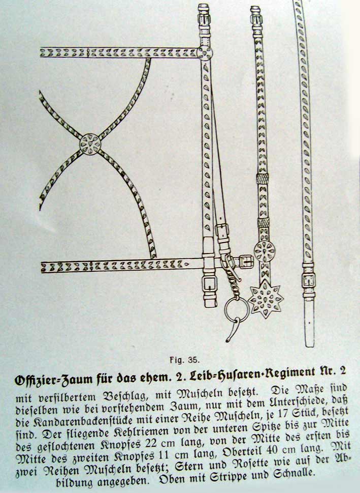 Zaumzeuge von verschiedenen preußischen Husaren-Regimentern waren mit Muscheln verziert. Nein, kein Kaurigeld - aber trotzdem schön anzusehen.