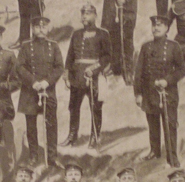 vielleicht stammen diese Offz. vom Füsilierbataillon (Abkommandierung innerhalb des Regimentes?)und durften den Füsilier-Offiziers-Säbel (FOS) weiterhin tragen.