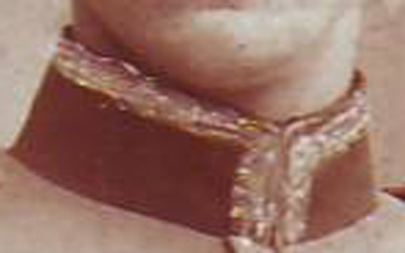 Tressen-Einfassung (Borte = Wolle!) am Kragen und den Ärmelaufschlägen. Über den Grund dieser "Beförderung" kann man heute nur noch spekulieren.