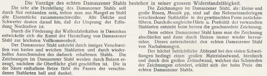 Echter Damst und Damaststahl sind Stahlsorten, die der Bearbeitung unterlagen, wie sie in obigem Scan (3. Abschnitt) kurz beschrieben sind.