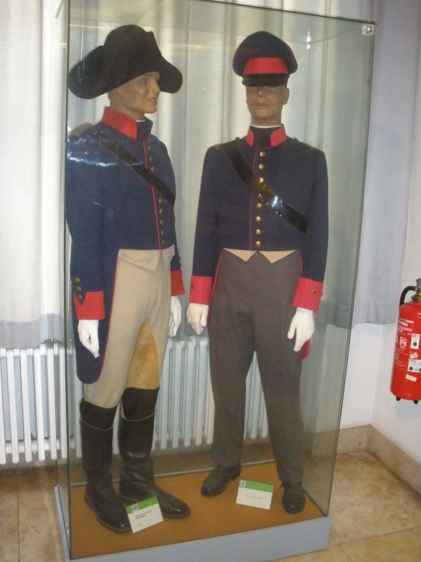 von links nach rechts: "Polizey-Commissarius 1790" "Polizei-Sergeant 1796-1809", Gardist der berittenen Bürgergarde 1810", Polizei-Sergeant1830"