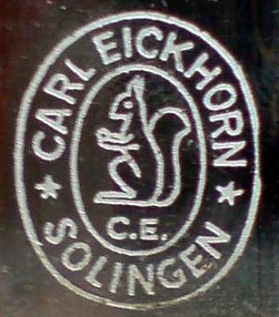 Siehe Anthony Carter "The Sword and Knife Makers of Germany 1850-2000", Volume I, Seite 133. Hier werden unter den Nummern 40 und 41 zwei ähnliche Fabrikmarken abgebildet (leider mit kleiner Abweichung).Bei der Nr. 40 ist als Beispiel ein Marine-Offiziersdolch M 1929 angegeben.