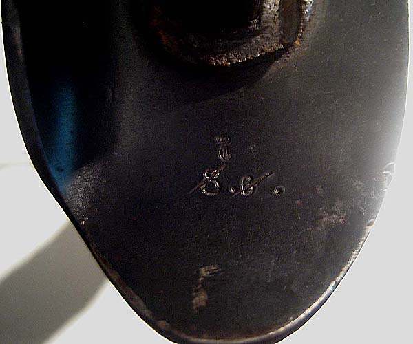 Vier Abnahmestempelchen am Degen könnte ich Dir noch zeigen, die sitzen da, wo man sie vermutet. Auf der Scheide ist nichts zu sehen, Truppenstempel hat sie nicht, da, wo der Abnahmestempel sitzen könnte, sitzt der Rost. Ich glaube aber nicht daran, denn sie hat zwei Trageringe.