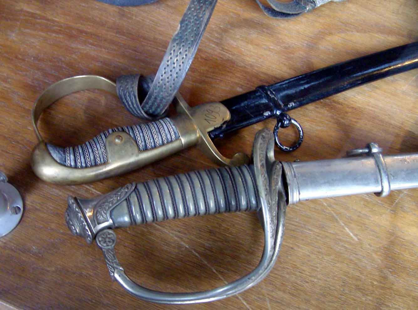 großherzoglich hessische Reitersäbel n/M wird hier gezeigt wie auch ein Infanterie-Säbel mit Stichblatt mit dem
