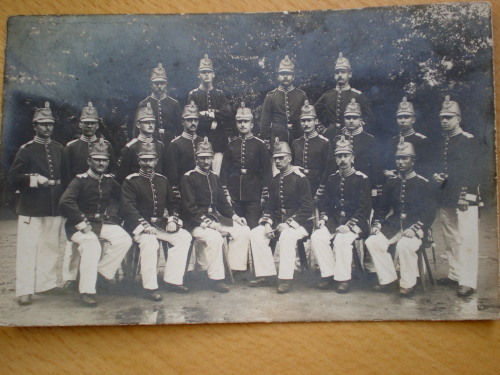 Es handelt sich um eine im 1. Weltkrieg gefertigte Aufnahme von Seesoldaten. Ein "typisches" Foto, wie es zum Ende eines Ausbildungsabschnittes, gemacht wurde.