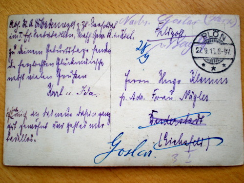 Der Absender ist Seesoldat im I. Ersatz-Seebataillon in Kiel, so schreibt er zumindest. Über Uniformierungs-Details der Seebataillone kann ich leider nichts sagen.