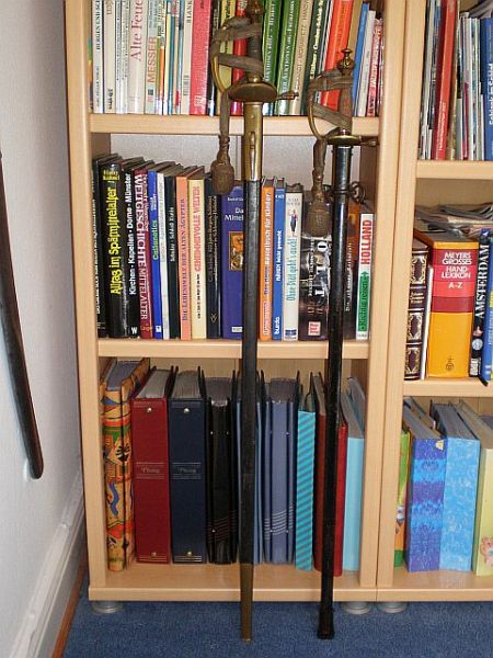 ich würde das nicht zu eng sehen. Bei der militärischen, wie auch der privat beschafften Ausführung gab es verschiedene Größen. Übrigens, wenn der rechts abgebildete ein "Offizier" ist, was ist denn der Degen links (als "Kammer" bezeichnet) für einer?