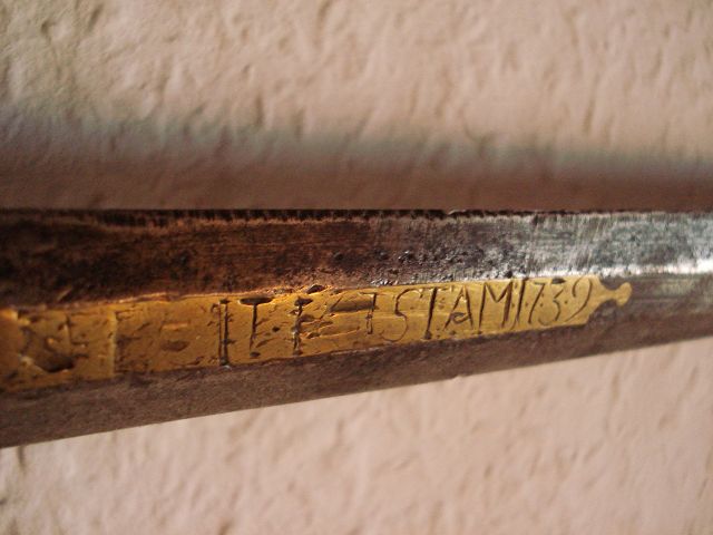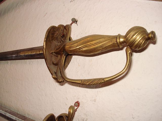 Der Degen mit Anteile aus Eisen, am Gefäß und an der Scheide, welcher sich in meinem Besitz befand, hatte leider auch keine Herstellerbezeichnung.