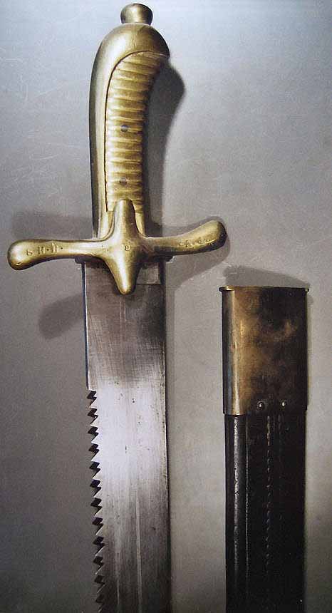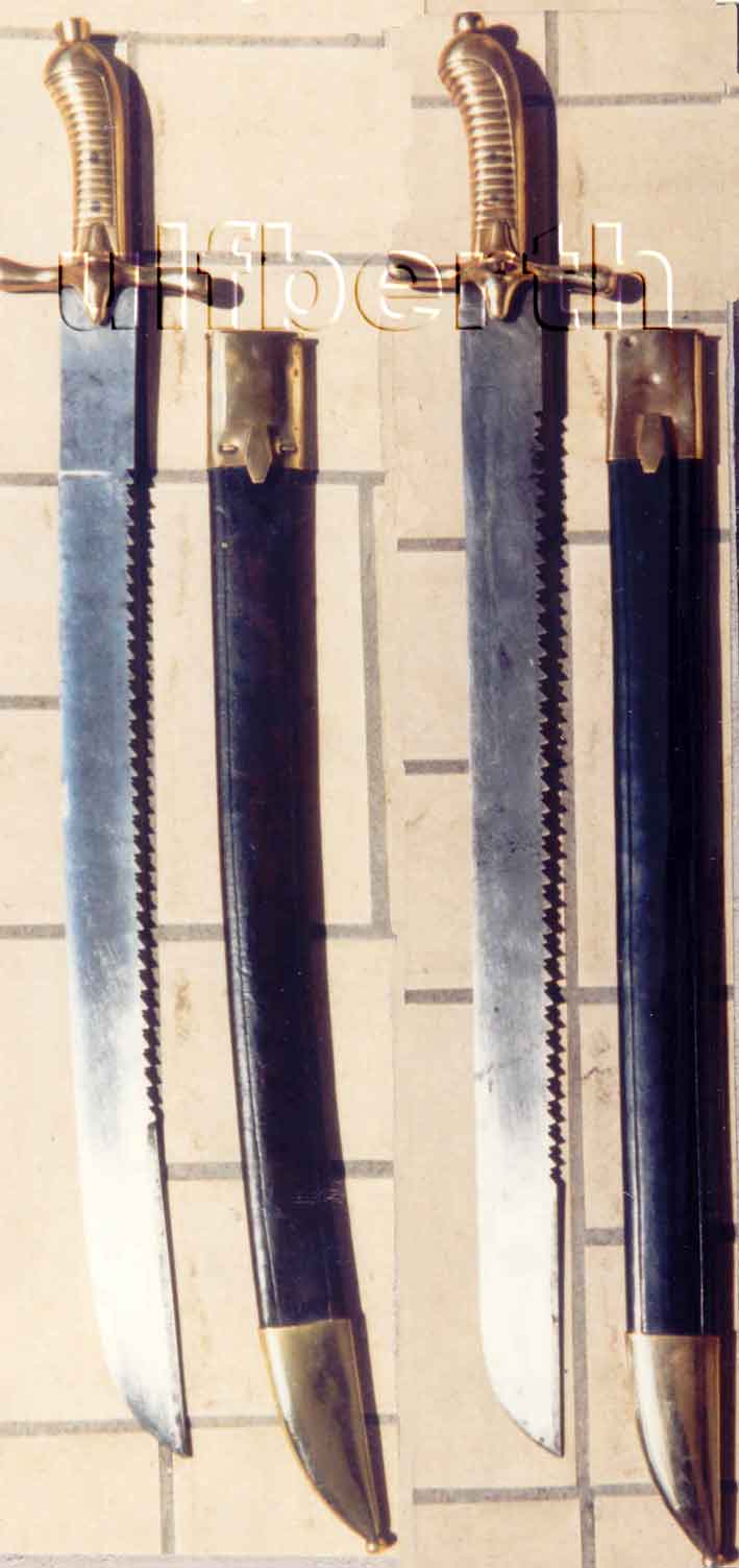 Das preussische Pionier-Faschinenmesser von 1841 sieht ähnlich aus, hat aber abweichend dazu eine leichte Pfeilhöhe sowie einen konischen Nietknopf.