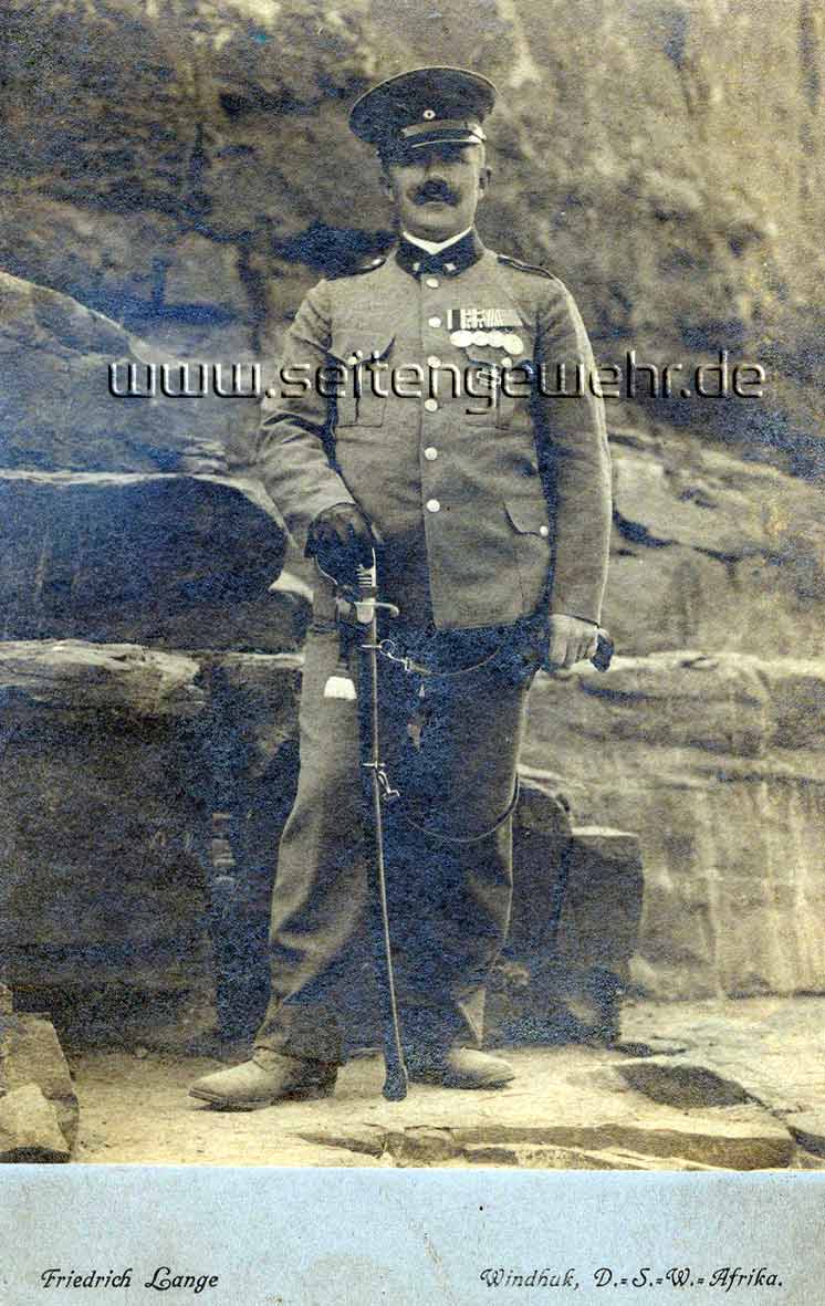 Polizeisergeant der Kaiserlichen Landespolizei in Deutsch Südwest-Afrika mit dem oben gezeigten Säbel.