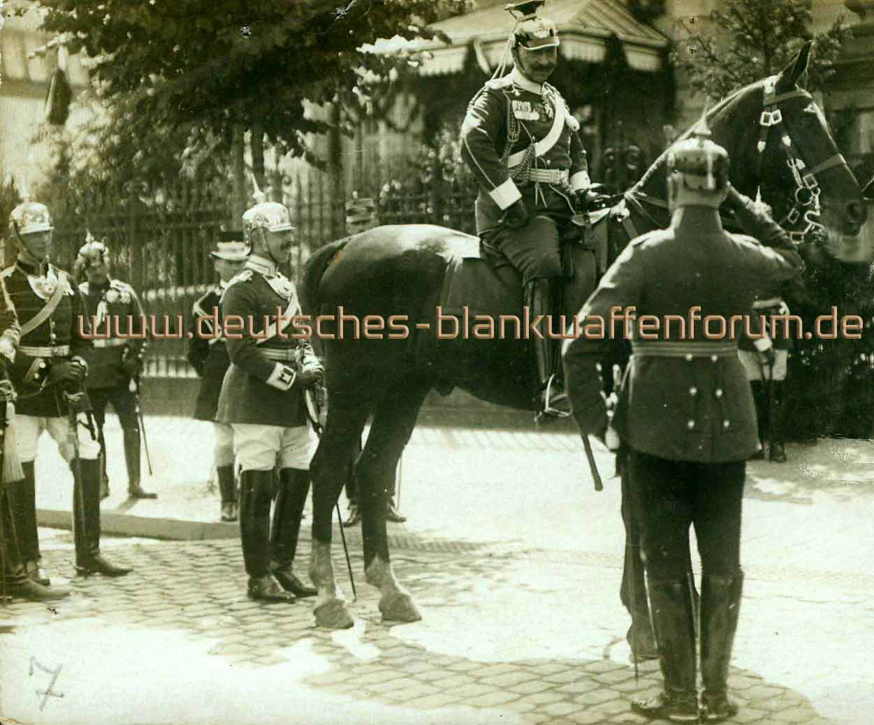 Interessantes Foto! Allerdings trägt S.M. die Uniform des Königs-Ulanen Regiment (1. Hannoversches) Nr. 13 dessen Chef er seit 13.9.1889 war. Erkennbar an den fehlenden Gardelitzen.