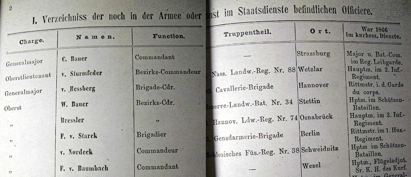 C. v. Stamford: Übersicht der Kurfürstlich Hessischen Officiere, welche bei der Einverleibung Kurhessens in die Preussische Monarchie im Dienste standen, Cassel 1881.