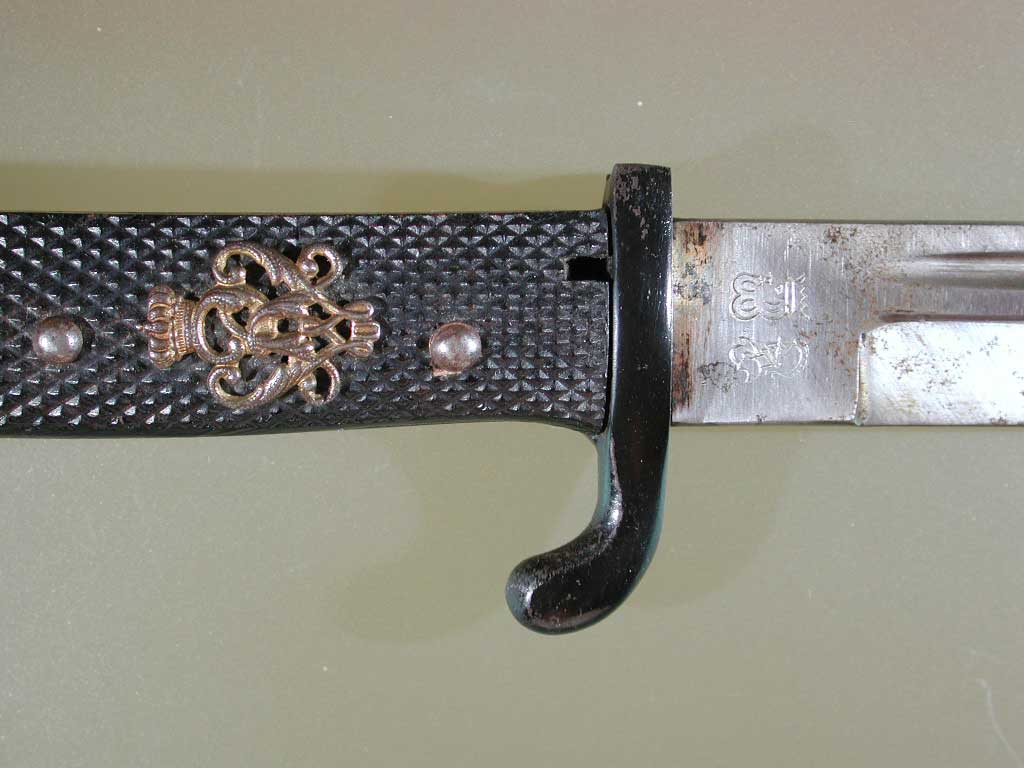 besitze ein Seitengewehr mit der Klingenlänge von 193mm.Die Waffe ist schwarz lackiert, das dürfte aber immer so gewesen sein.Ich hoffe es kann jemand mehr zu dem Stück sagen.Ich bedanke mich im Voraus für eure Hilfe.