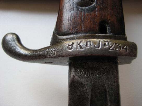 Vielen Dank für die schnelle Antwort.Das mit dem Kriegsstempel hatte ich mir schon gedacht,aber die Deutung war mir unmöglich.Ich habe das Bajonett aus England bekommen und war damals sehr erstaunt über die Stempelung.