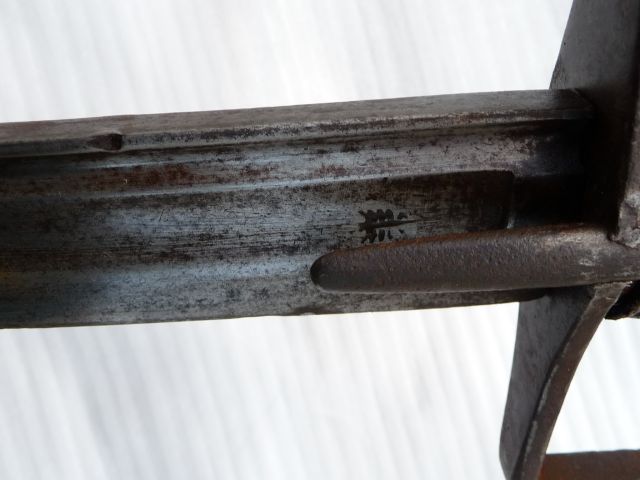 A N°1011" an der Oberseite der Parierstange. Zugehörige Scheide mit zwei Eisenbeschlägen und Belederung.