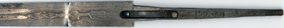 Ob es sich weiterhin bei der Klinge um "Echten Damast" handelt kann ich zunächst nicht bestätigen. Regelmäßig haben Klingen aus echtem Damast auf der Angel einen entsprechenden Stempel. (Ausnahmen bestätigen dabei die Regel.) Solch einen Stempel kann ich auf den Fotos nicht erkennen. Vorbehaltlich einer Inaugenscheinnahme vermute ich mal, daß es sich um Raffinierstahl handelt. Für Letzteren spricht auch der Rost auf der Klinge.