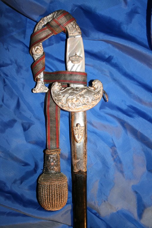 Herzlichen Dank für Dein Foto des St.Georgs Hausritter Degen mit Portepee.Der Stichdegen ist ohne Krone auf der Griffschale,also laut Statuten § 7 nicht von einen königlichen Prinzen.Mit Krone für einen königlichen Prinzen.