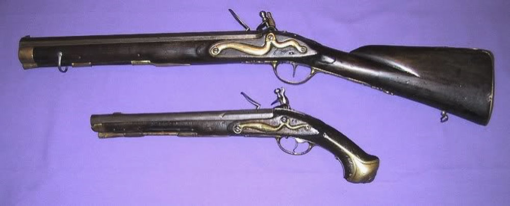 Here seen together with, from left an Norwegian M/1711 rifle for Ski troops and a pair of ca 1675 short Dutch rifeled Flintlock Carbines: