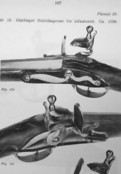 The photo below shows an infantry musket from Ca 1750. The Musket is in the military museum at Akershus in Oslo: