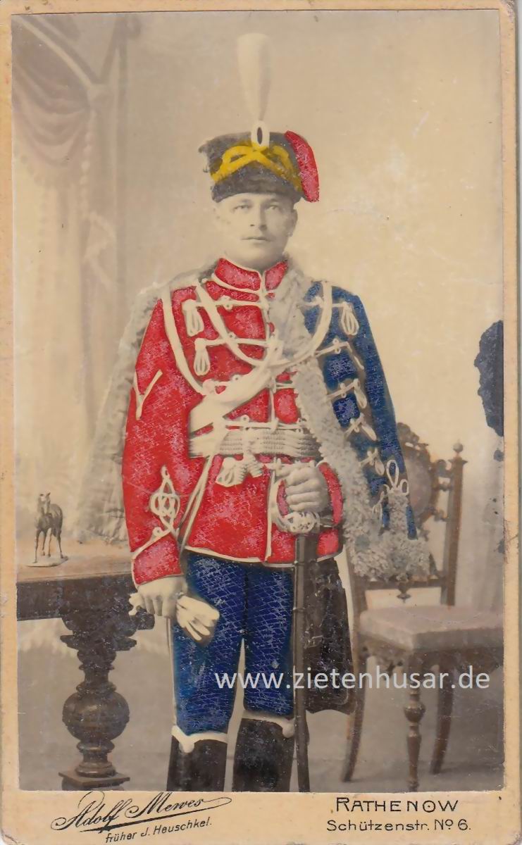 Die Dienstzeit der Abgebildeten war von 1899 bis 1902 (Husarenregiment v. Zieten, 2. Eskadron).