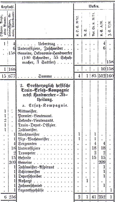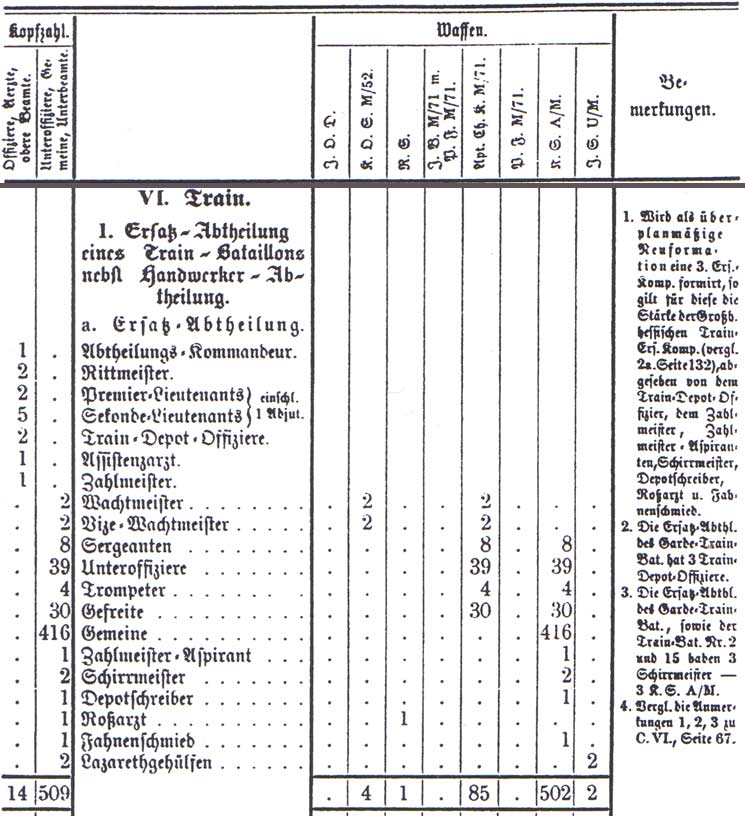 ... Train-Bataillon Nr. 18 entstand 1890 als "Großherzogl. Hessisches Train-Bataillon" ohne Btl.-Nummer (Krickel/Lange, Nachträge 1892). ...