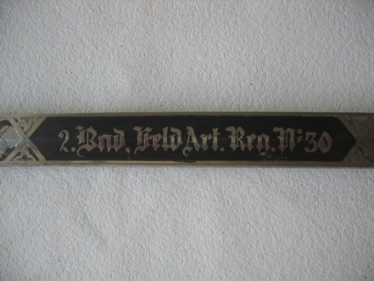 you're right, it's an privat bought "Artillerie-Extra-Säbel" of a member of "2. Badisches Feldartillerie-Regiment Nr. 30", Rastatt.
