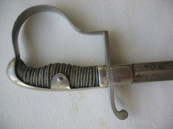 Official looking marks like "30.A.2.49." are often to be found on privat swords, we think it's a personal identification mark to to differentiate from the similar looking sabers. Contrary to the official marks all letters and numbers on your saber have the same size.
