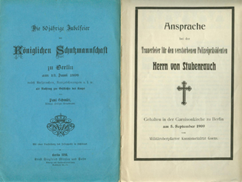 Goens; Ansprache bei der Trauerfeuer für den verstorbenen Polizeipräsidenten Herrn von Stubenrauch, Berlin 1919.