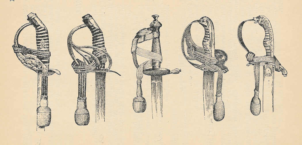 Da hier die Frage aufkam, wie ein Portepee um einen Degen oder einen Säbel zu binden sei, füge ich eine Skizze, die das für die