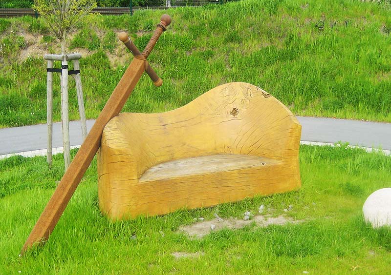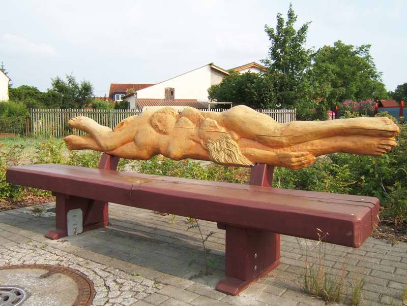 neuen Skulpturen und Plastiken lädt an der Einmündung in die Fontanestraße dieses frivole Bänkchen zum Verweilen ein.