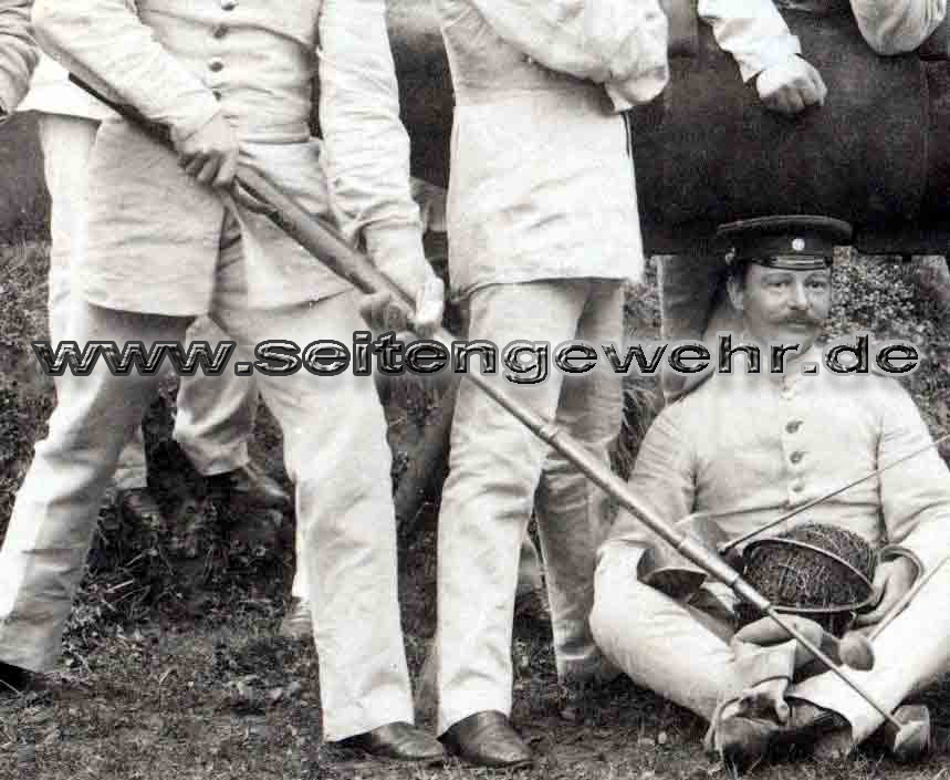 Witzleben erwähnt das die alten Perkussionsgewehre dafür gebraucht würden und ich habe mal ein M/1862 Zündnadelgewehr gesehen. Kammer mit einem Paßstück aus Holz verfüllt, Abzug und Abzugbügel entfernt. Schaft um ca. 1/3 gekürzt. In der Mündung verbolzt ein starker Vierkantdraht -gebogen wie ein Dillenbajonett. An der Spitze zu einem Ring gedreht.