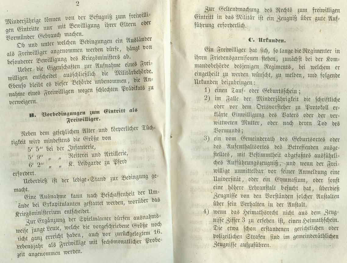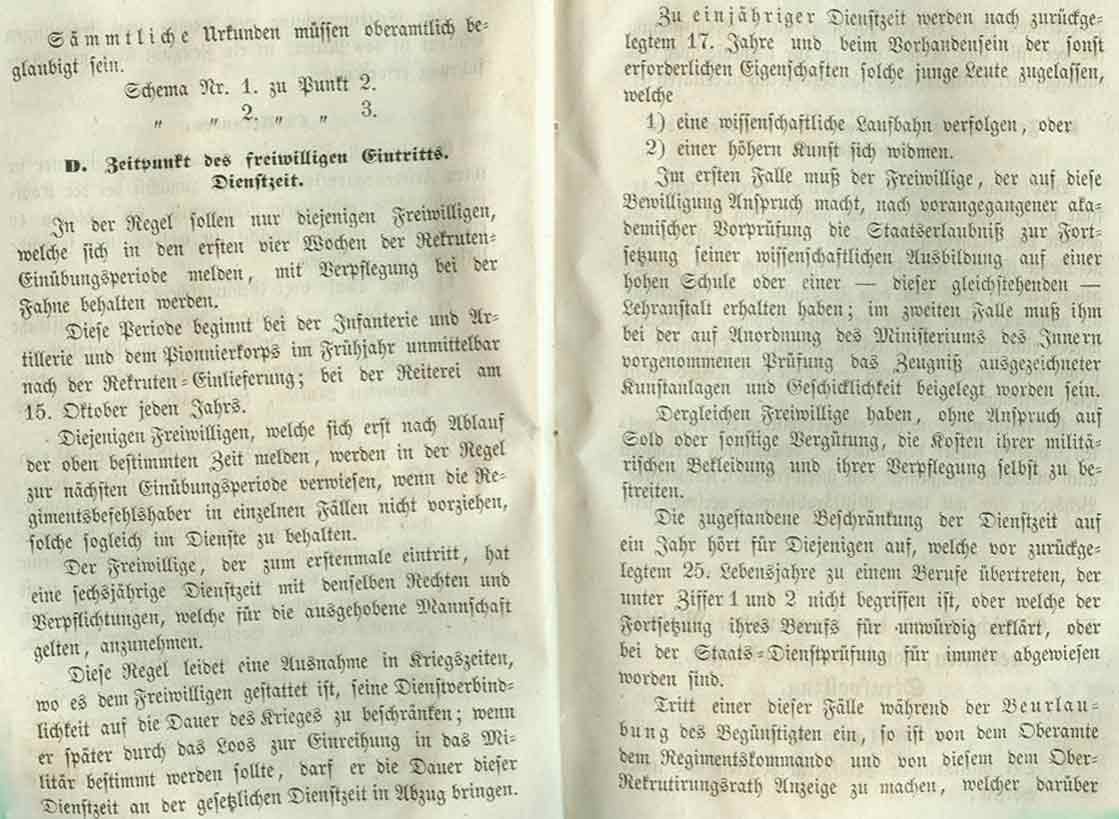 Zur Abwechslung einmal ein paar "trockene" Vorschriften zum freiwilligen Eintritt in die königlich württembergische Armee.