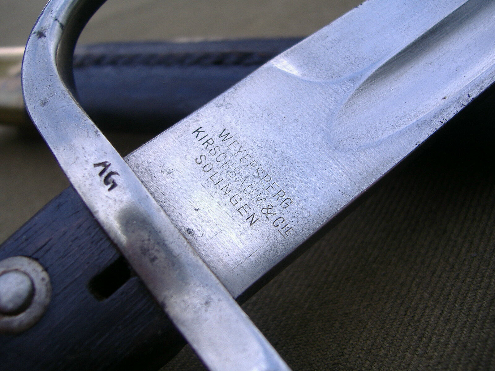 auf Grabendolch nach Muster KS98, Holzgriff, 'Bowie'-Klinge