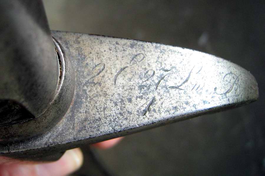Schleppblech und Klingenrücken sind mit einem überkröntem FW und darunter eine 38 gestempelt. Auf der Pariestange erkenne ich noch "2 E 27 Lw R" und darunter eventuell eine 4.