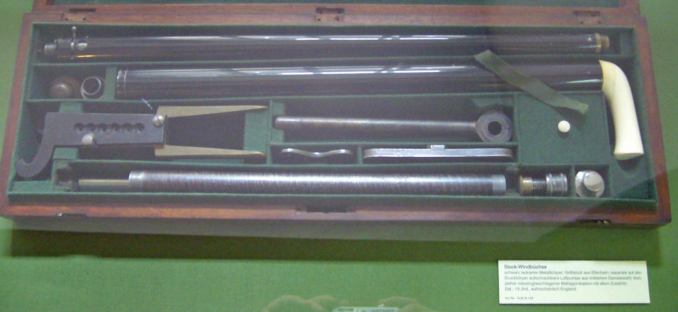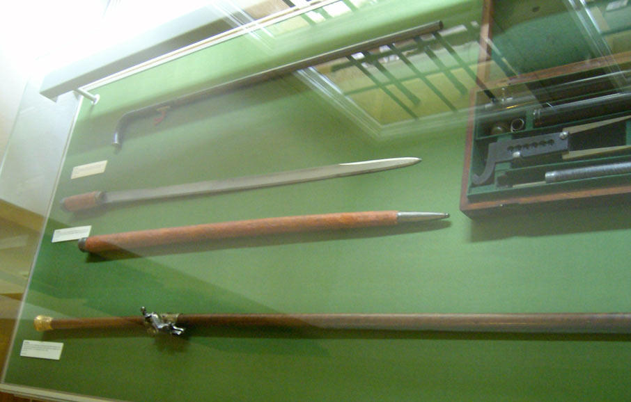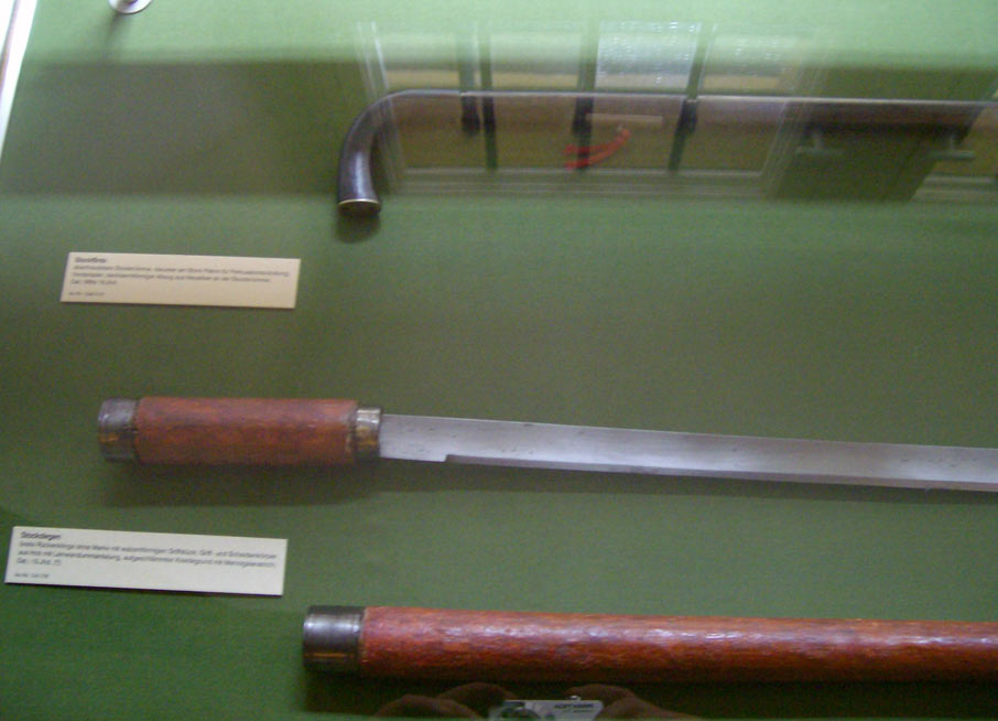 Stock-Windbüchse, Degenstock sowie Spazierstöcke mit eingebauter Schußwaffe. Was heute unter den Begriff "Verbotene Waffen" fällt, wurde zur Kaiserzeit völlig normal angeboten und verkauft.