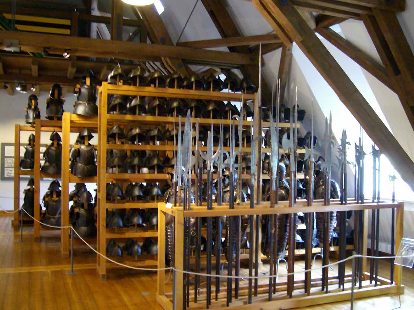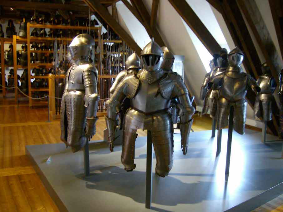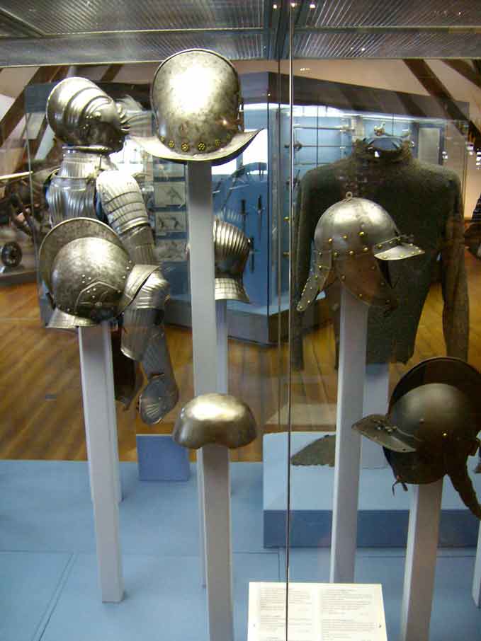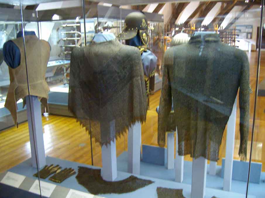 Kettenhemde, leinenes Wamst, sowie Kürass und Kinderkürass.