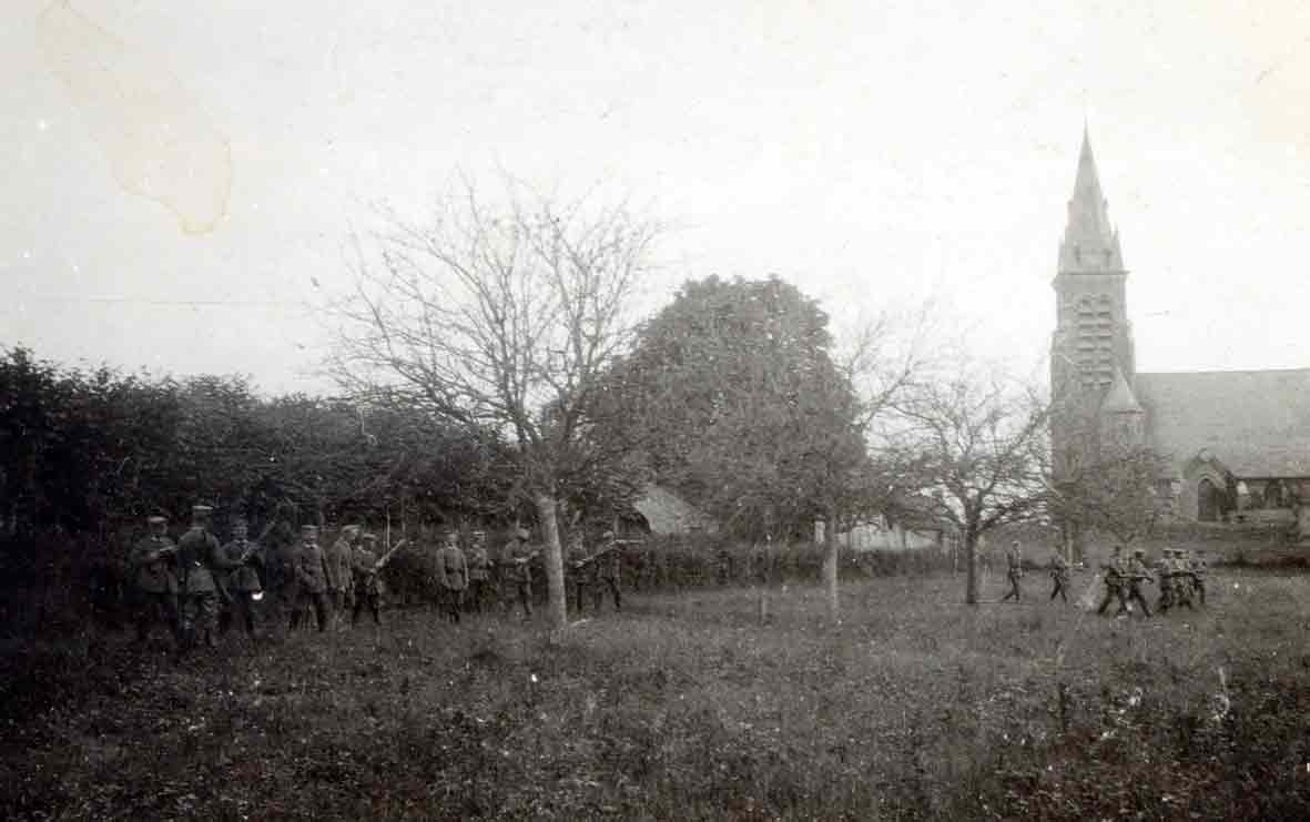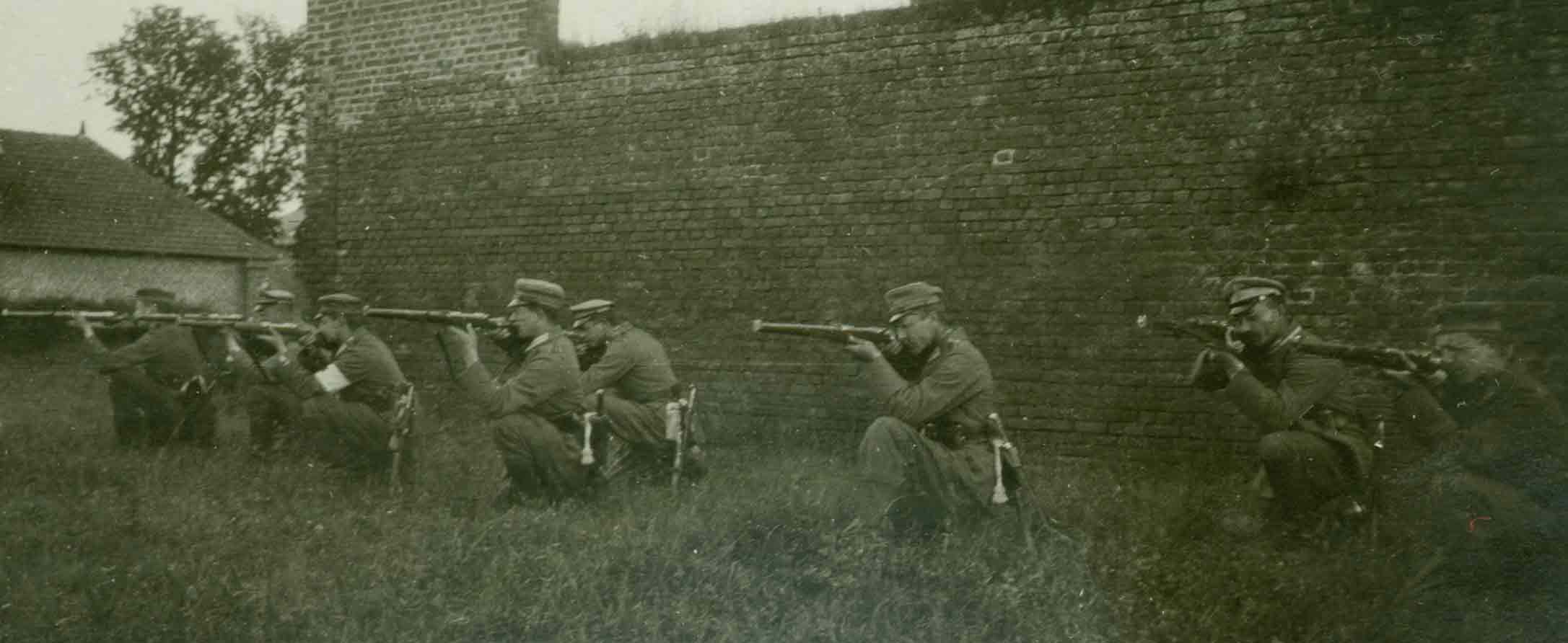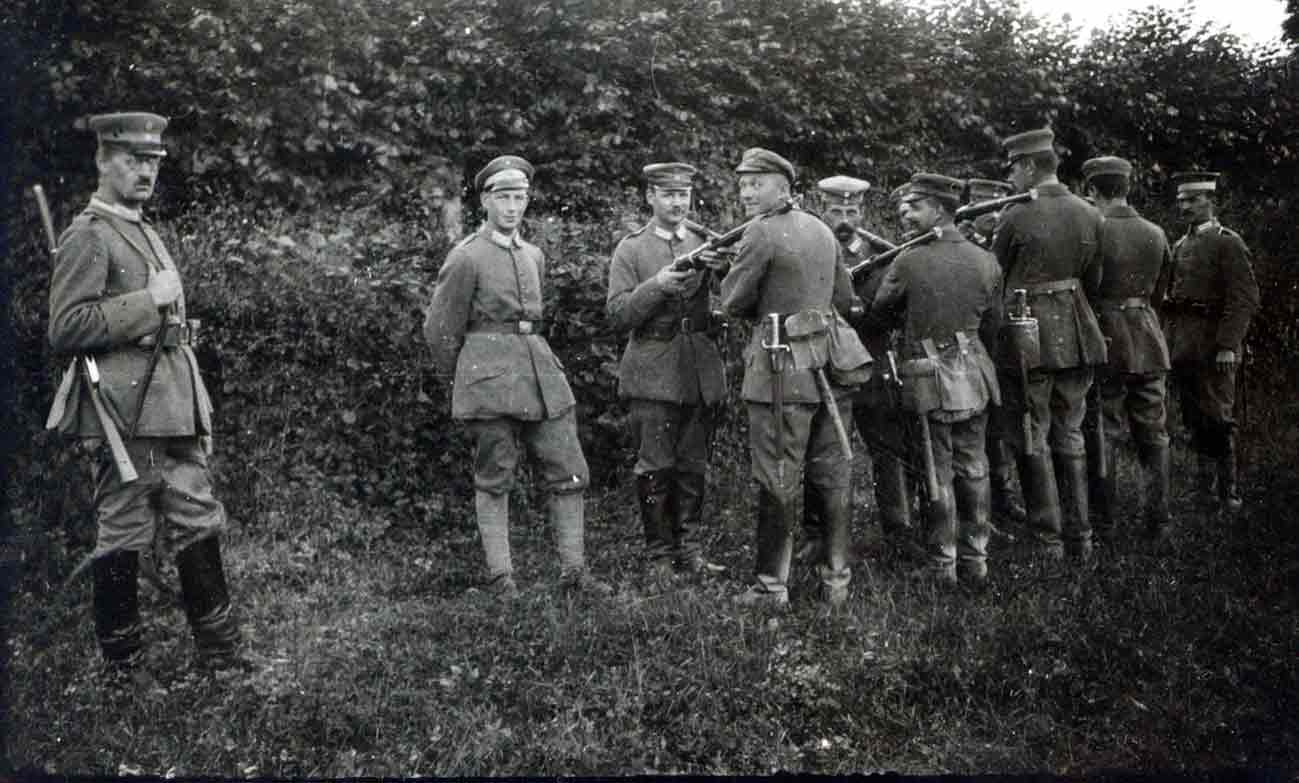 Bilderserie von der Ausbildung von Train-Mannschaften (?). Beachtenswert ist die Bewaffnung mit Karabiner M/1888 und den darauf nicht aufpflanzbaren Seitengewehren M/1871.