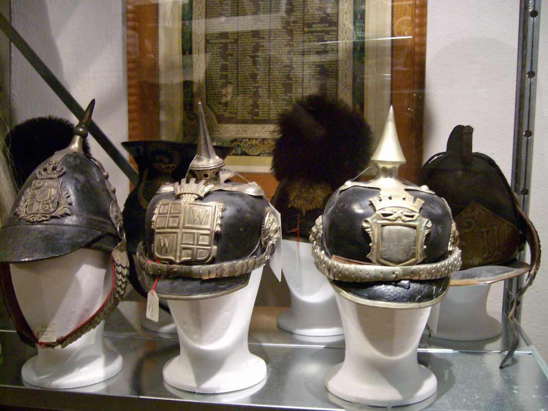 Militär-, Polizei-, Bürgerwehr- und Feuerwehrhelme.