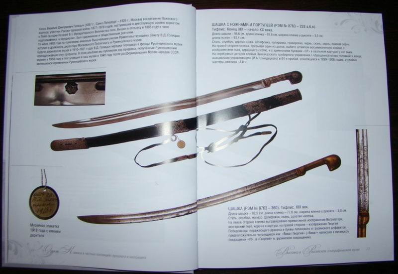 Vorgestellt sind die kaukasischen Blankwaffen aus der Sammlung des Russischen Ethnographischen Museums (St.Petersburg) und aus bedeutenden russischen Privatsammlungen. Viele Kinzal/Dolche, Schaschka, Säbel usw., ein Muss für jeden "Kaukasus"-Sammler.