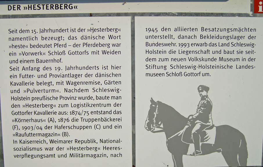 Das Museumsgelände auf den ehemaligen Schleswiger Pferdeweiden am Hesterberg (hest = dän.: Pferd) diente seit Ende des 19. Jahrhunderts der preußischen Kavallerie als Depot. Noch bis 1990 wurde es von der Bundeswehr genutzt. 1993 wurde die Anlage vom Land Schleswig-Holstein erworben und als Museum für die volkskundlichen Sammlungen des Landesmuseums für Kunst und Kulturgeschichte eingerichtet. Das Hauptgebäude und Wahrzeichen des Volkskunde Museums ist seither das weithin sichtbare viergeschossige Körnerhaus, das 1875 als Getreidespeicher errichtet wurde und heute Dauerausstellungen und Museumsmagazine beherbergt. Weitere Ausstellungen befinden sich in der ehemaligen Truppenbäckerei von 1876 und in den einstigen Lagerhallen für Getreide und Raufutter.