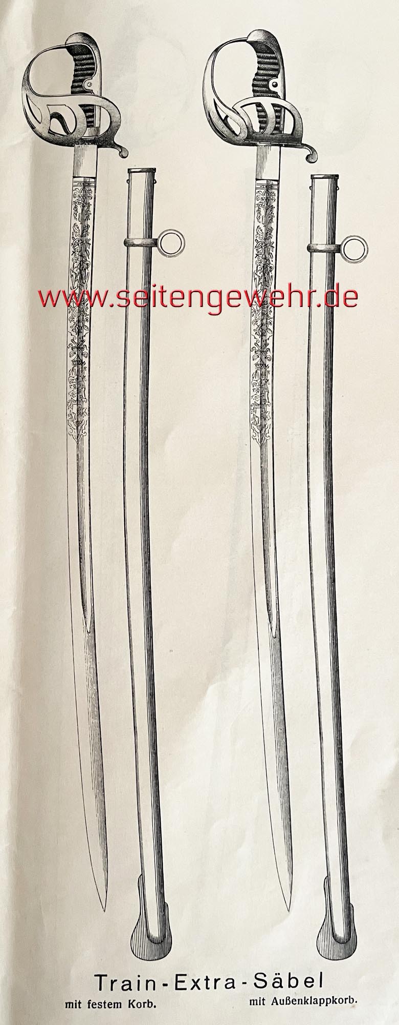 Für diejenigen, welche mit den Uniformfarben auf s/w-Fotos nichts anfangen können, sei auch ein Blick auf den Säbel empfohlen. Wie bei den Extrawaffen des Trains üblich, wird zu dieser Zeit kein beweglicher, sondern ein starrer Tragering verwendet.