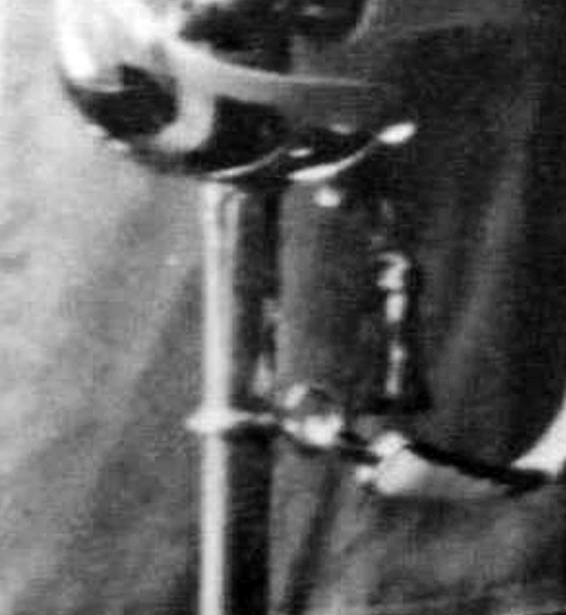 Für diejenigen, welche mit den Uniformfarben auf s/w-Fotos nichts anfangen können, sei auch ein Blick auf den Säbel empfohlen. Wie bei den Extrawaffen des Trains üblich, wird zu dieser Zeit kein beweglicher, sondern ein starrer Tragering verwendet.