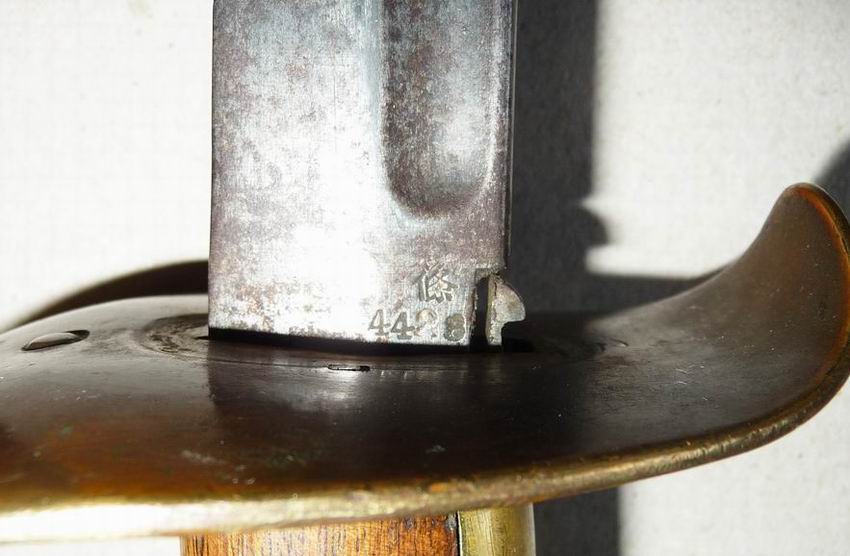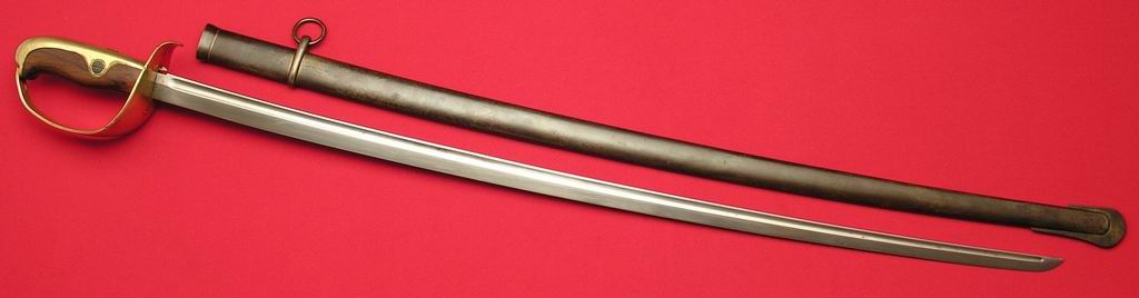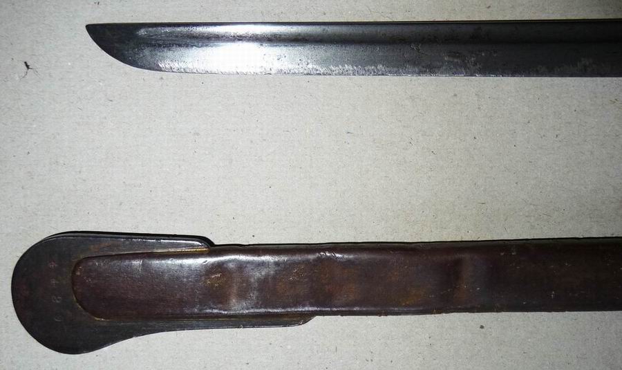 Der Säbel, mit der auf dem Schleppblech gleichlautenden Seriennummer 4429, ist im stark getragenen Zustand. Die Ringöse ist ausgeschlagen, die Fingerschlaufe nicht mehr vorhanden, die Scheide im unteren Drittel verbeult, die Klinge narbig und geschliffen, und der Griff ein wenig locker.