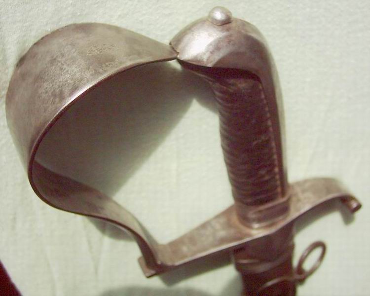 Weitgeschweifter Griffbügel, fascettierte Griffkappe.