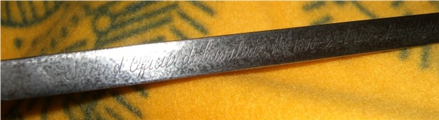 Auf Klingenrücken steht:Sabre d`Officier de kavalerie M le 1896 -2noVaille-Manufacture nationale d'armes de Ehatdhrault 1913.