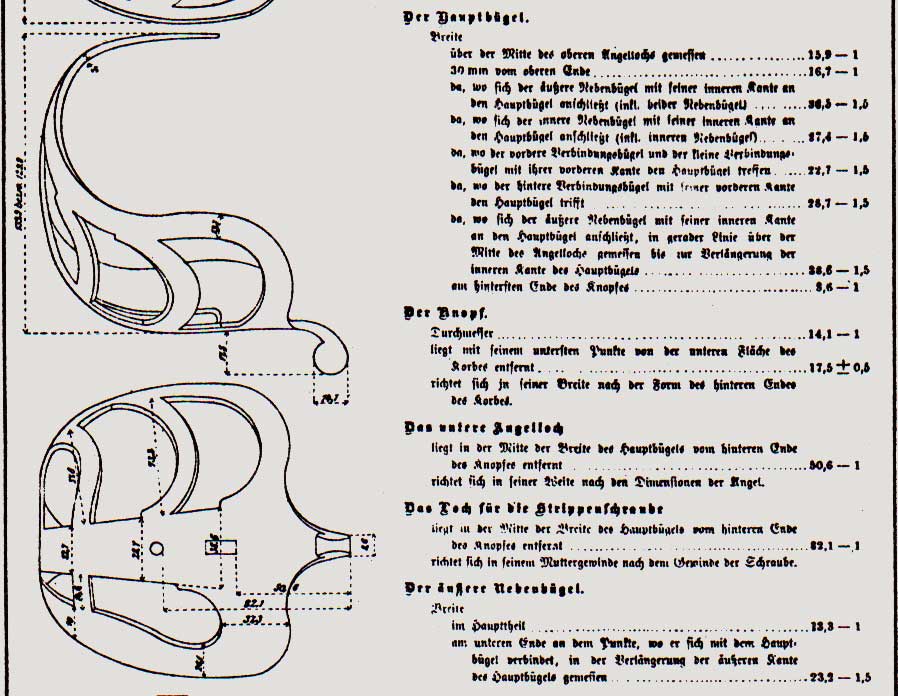 Bei den Mannschaftswaffen bestand die Fingerstrippe aus einfachem Leder. Die "Strippenschraube" wurde zunächst direkt in das 3 mm starke Stahlblech des Korbes geschraubt, erhielt jedoch 1879 eine halbkugelförmige "eingestrichene Mutter" als Gegenstück zur Schraube.