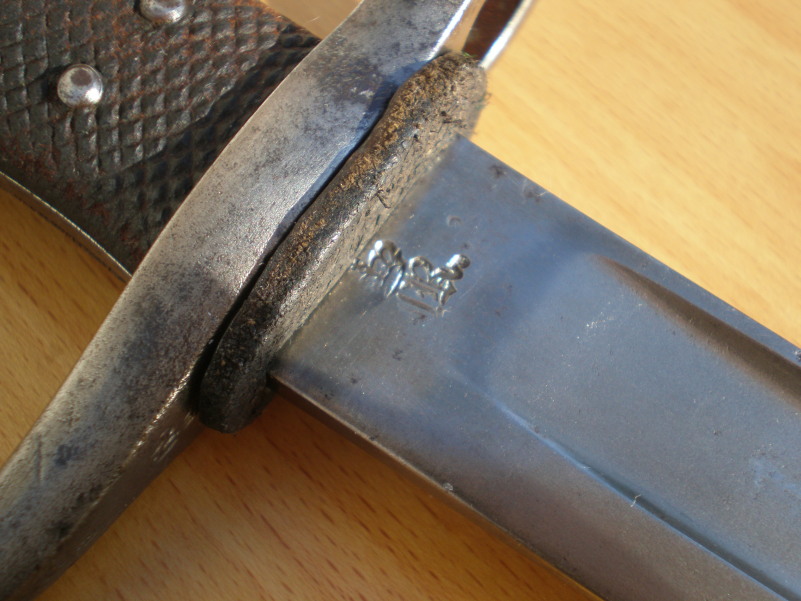 Bei diesem Stück befindet sich kein Truppenstempel auf der Scheide, so auch beschrieben bei Rüdiger W.A.Franz - Band 2, S.489 / Band 4, S.194.