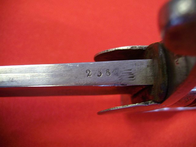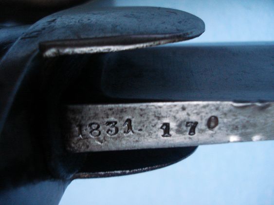 Auf der Unterseite der vorderen Parierstange befindet sich ein Abnahmestempel....Indiz für eine Neumontage.....