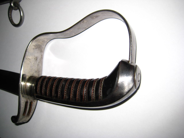 Meine Vermutung geht dahin, dass es sich um einen Baden M56 mit aptierter, ältern badischen Klinge handelt. Ich glaube ich habe die Jahreszahlen 1842 und 1844 schon mal im Zusammenhang mit Baden gesehen, aber wo? - Bürgerwehr ?? Die Klingenvernietung sieht auf jeden Fall alt aus. Die Scheide hat auch nur einen beweglichen Tragering, jedoch ohne den für Baden typischen Buckel - aber sie passt wie angegossen.